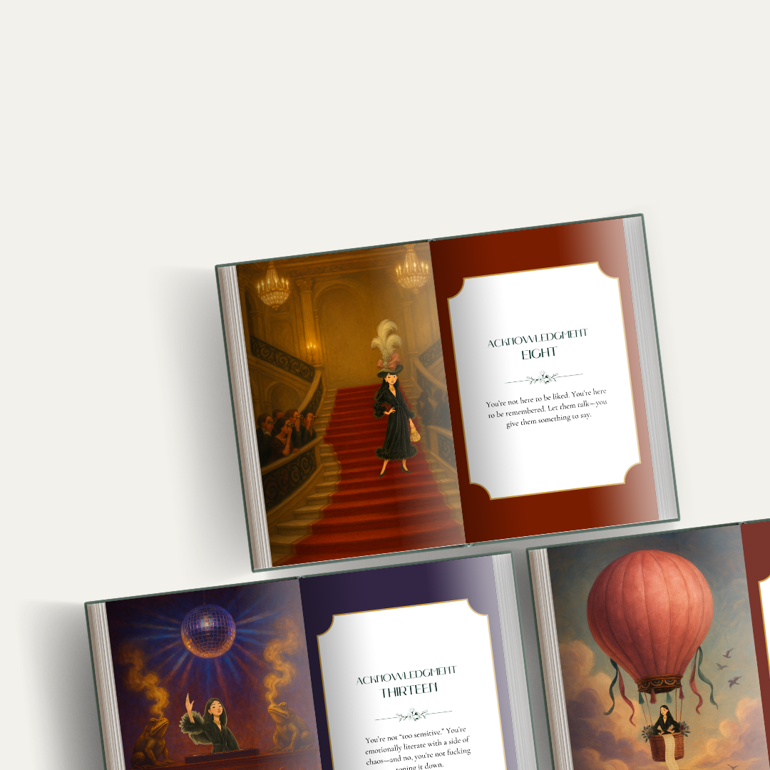 Just a few pages of lovingly chaotic validation for those who are doing their fucking best. The spotlight is yours to take with this customizable book.